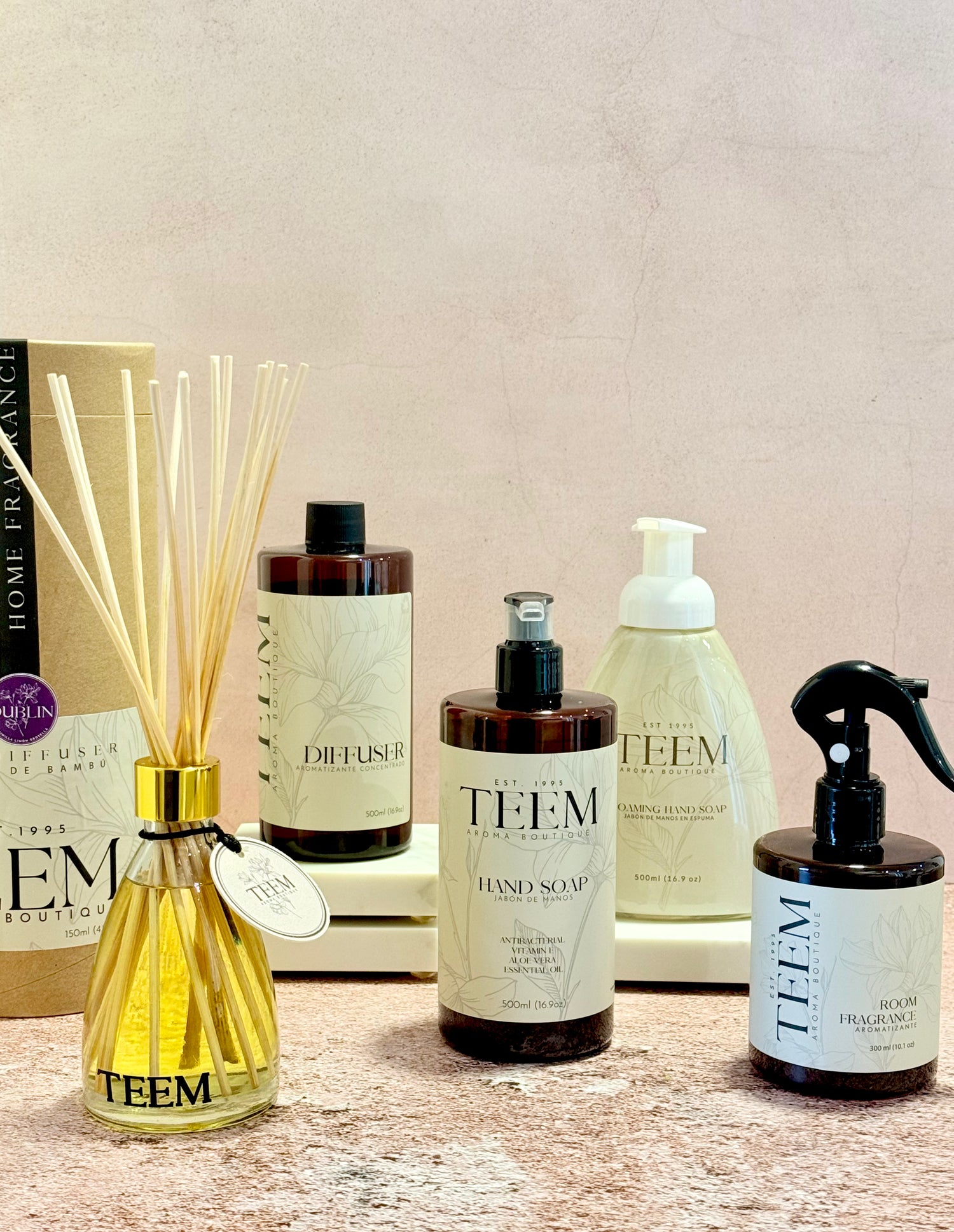 Estamos muy felices de presentar la nueva línea de Saniklyn, Teem aroma boutique, nuestra marca de lujo, elaborada con una calidad inigualable, fragancias elegantes, cautivadoras y únicas que te encantaran para todos tus espacios, casa, recamara, baños, carros, oficina o negocio.